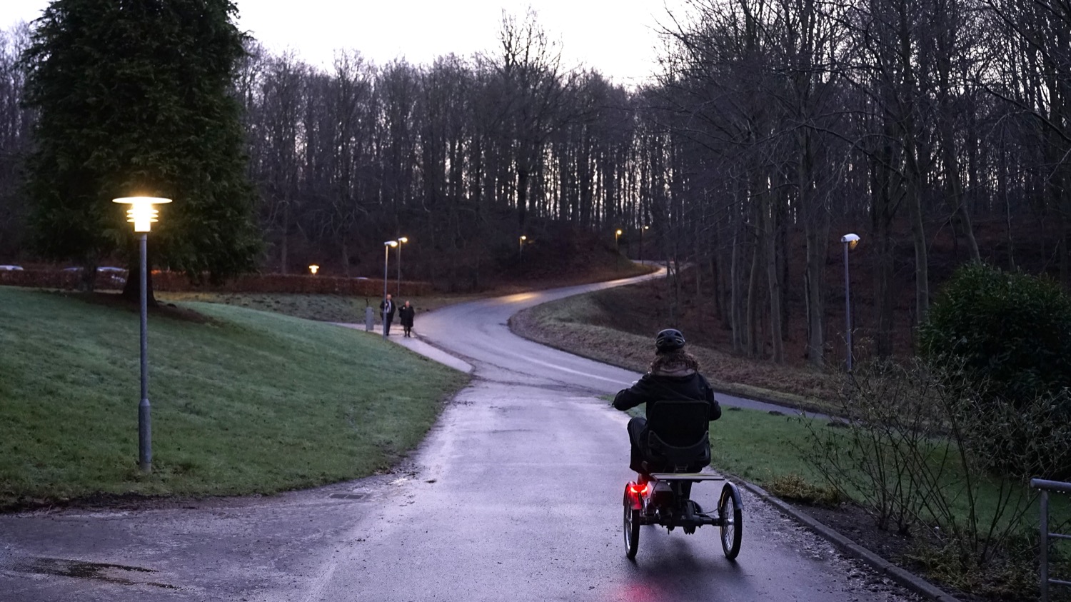 Op til praktikken begyndte en fysioterapeut fra Ny Fjordbo derfor at træne transport med Selina. Sammen har de cyklet op og ned af bakkerne omkring Vejlefjord, og Selina har afprøvet forskellige typer af cykler og fundet en model, hun er tryg ved. Da Selina begyndte at cykle i praktik agerede fysioterapeuten ”følgevogn” og medvirkede til, at det blev en god oplevelse. I dag klarer Selina selvstændigt turen mellem Ny Fjordbo og Børnehuset Skovly. Der foregår på en særlig elcykel med tre hjul – og sådan et transportmiddel går ikke ubemærket hen blandt børnene i børnehaven.